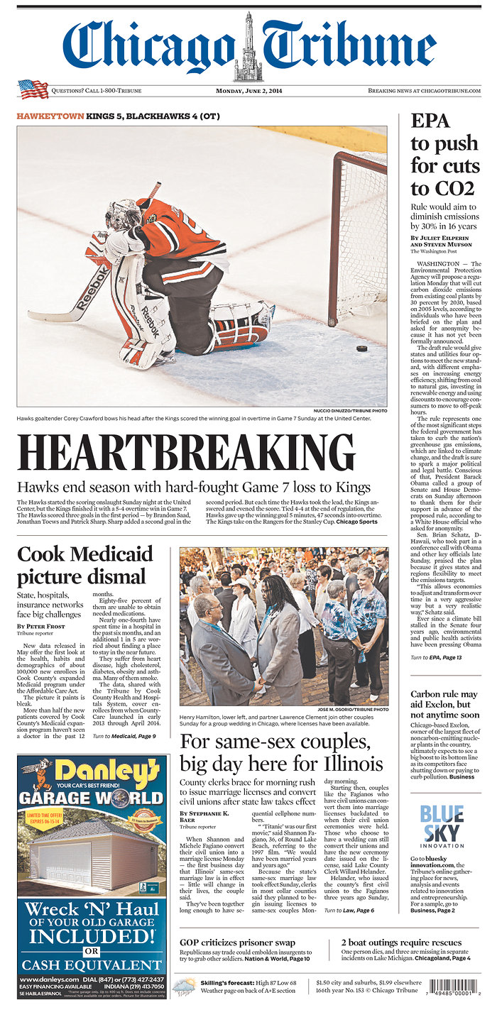 Tribune Hawks Published June 2, 2014 at 700 × 1440 in Difference in passion for hockey in Chicago and LA? Just look at front pages