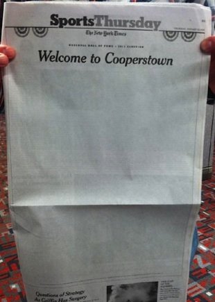 NYTblank Published January 7, 2014 at 310 × 435 in Flashback: Recalling last year’s New York Times’ blank sports front for Hall of Fame results