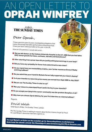 ad Published January 14, 2013 at 300 × 428 in Sunday Times places Armstrong ad in Chicago Tribune: Takes easy way out by going with Oprah